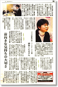 - 産経新聞 2008年3月1日「前向きな気持ちの大切さ」に掲載されました。